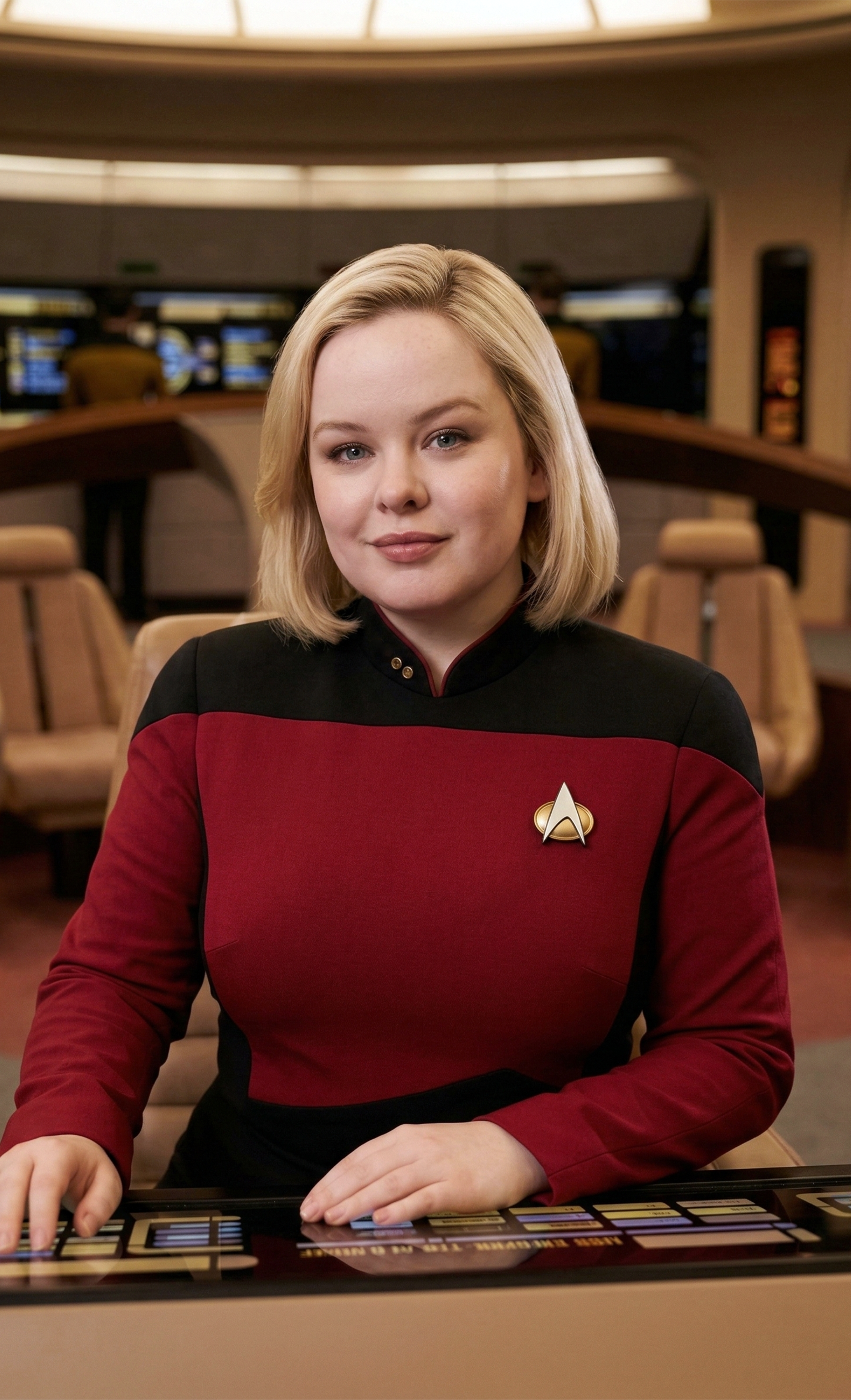 A few weeks later, she piloted the shuttlecraft Dionysus, delivering and extracting undercover away teams to a forest near Enika on Goffan III. (“Starry, Starry Night“)